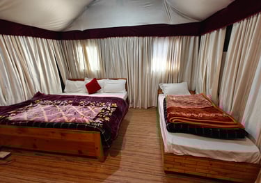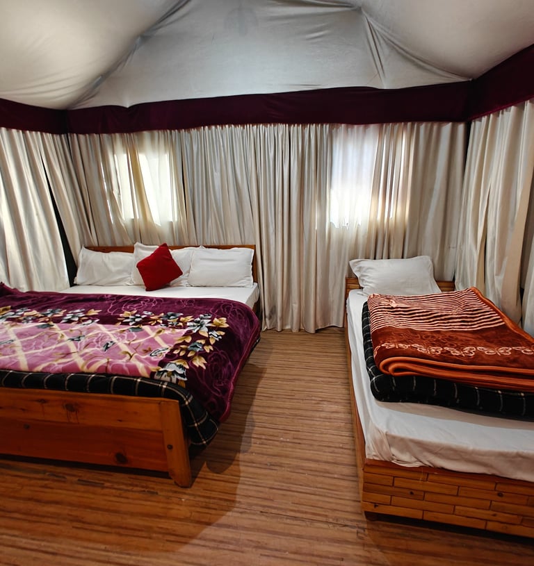 Indulge in the comfort of our luxury tents, designed to provide a cozy and immersive camping experience.